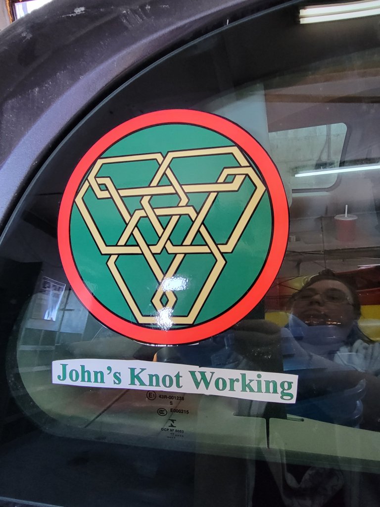 I put larger decals on our van. I realized I should have put the QR code on it but I can add it. I printed them a little larger than I should have so we put them on the side window. I’ll print them again so they can go on the other side.